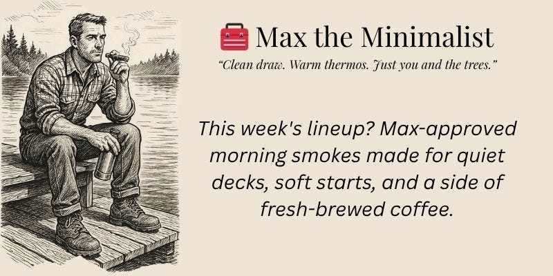 No flash. No fuss. Just five cigars, perfect for a quiet morning — the smokes Max would bring to a lakeside dock with a black coffee and no agenda.